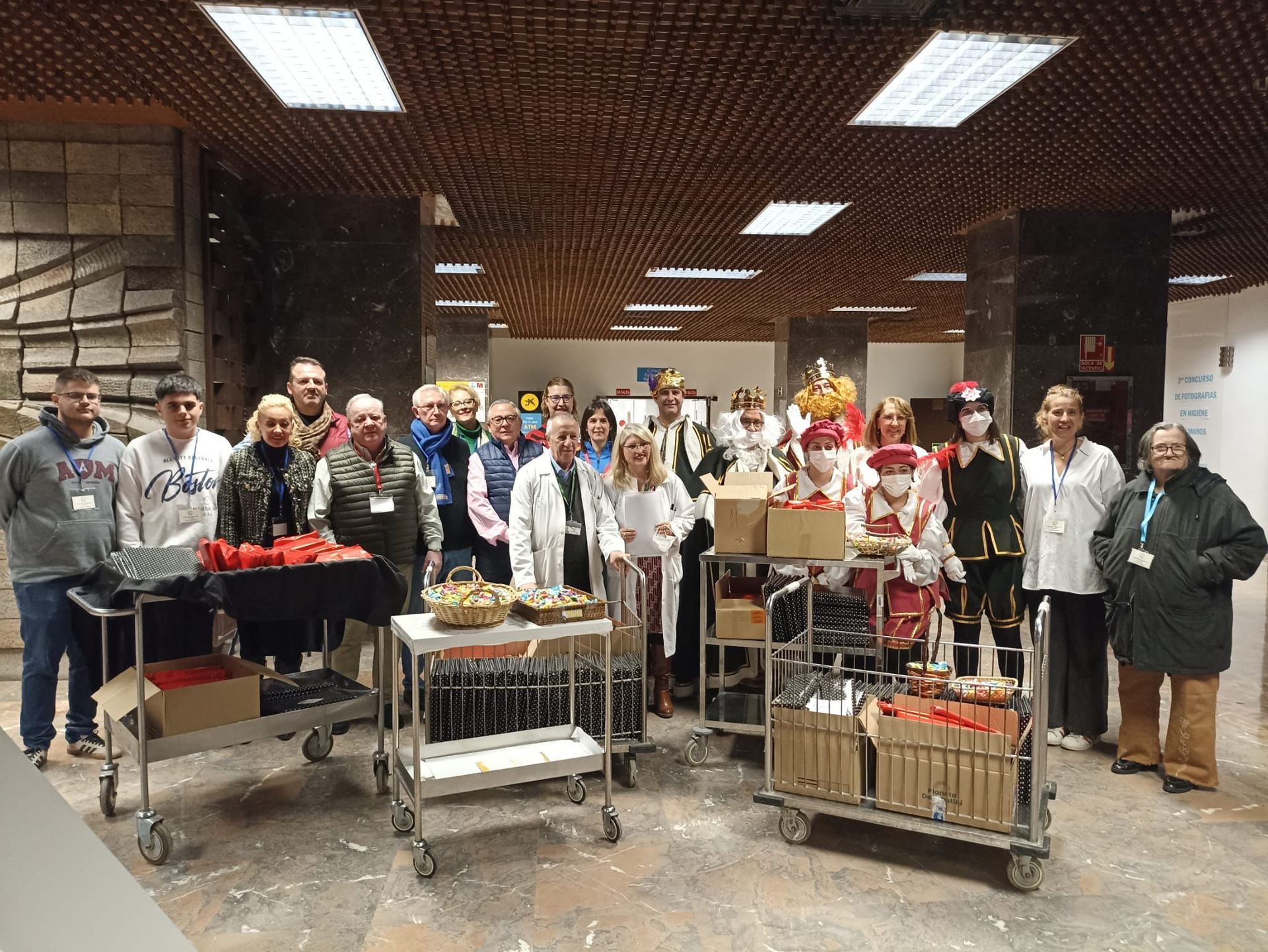 los Reyes Magos con sus pajes visitaron a los pacientes ingresados en el Hospital Central de la Defensa Gómez Ulla, llevando regalos a cada uno de los pacientes. Gracias a la dirección del hospital por confiar en AFADE para hacerlo posible y a todos los voluntarios que participaron en ello, y por supuesto a Jorge y Anabel que donan los regalos y gracias al Club deportivo de la Asociación de vecinos de Carabanchel Bajo por su colaboración.