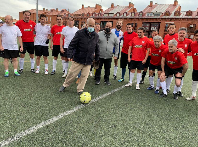 La Asociación Nacional de Alzhéimer y otras Demencias, AFADE, ha organizado un partido solidario entre políticos y veteranos del Club Deportivo Carabanchel en el campo La Mina en el distrito de Carabanchel.